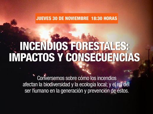 El último encuentro del presente año, nos plantea un tema contingente a nivel país, y que en la región de Valparaíso, resulta de alta importancia y preocupación, como son los Incendios Forestales; Se plantean entonces las consecuencias e impactos de éstos, reflexionando acerca de sus afecciones en la biodiversidad y ecología local, problematizando el rol de las personas en la generación y prevención de los mismos; junto a la participación de dos especialistas, más la moderación del director del Museo Baburizza, Rafael Torres.