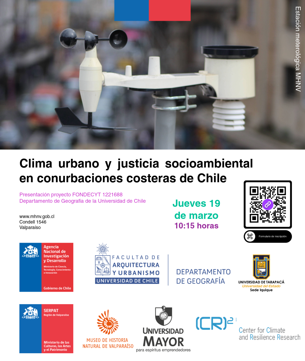 El Museo de Historia Natural de Valparaíso invita a la comunidad a participar en la presentación oficial del Proyecto FONDECYT 1221688, titulado “Clima urbano y justicia socioambiental en conurbaciones costeras de Chile”, iniciativa de investigación orientada a analizar el impacto de las condiciones climáticas urbanas en ciudades costeras y su relación con la equidad territorial y el bienestar de sus habitantes.