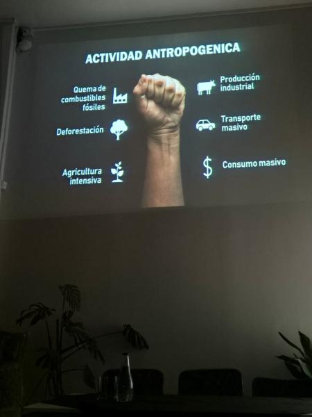 Durante su intervención, explicó cómo esta influencia ha derivado en una crisis climática que pone en riesgo al planeta, evidenciada en el aumento de olas de calor, sequías prolongadas, inundaciones intensas, retroceso de glaciares, aumento del nivel del mar y pérdida de biodiversidad, entre otras consecuencias. Asimismo, promovió diversas acciones individuales y colectivas para contribuir a la reducción de gases de efecto invernadero.