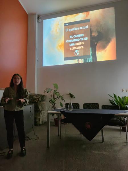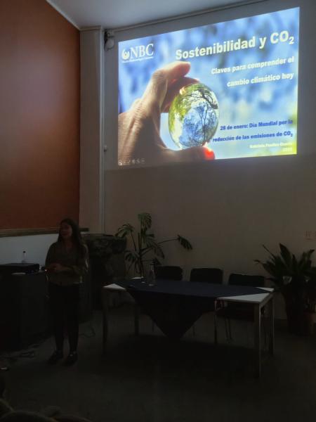 La jornada se inició con la presentación de Gabriela Puelles Osorio, Ingeniera Civil Bioquímica y profesional del Núcleo de Biotecnología de Curauma (NBC) de la Pontificia Universidad Católica de Valparaíso, cuyo trabajo se centra en cambio climático, huella de carbono, gestión de emisiones y sostenibilidad. Su exposición, titulada “Sostenibilidad y CO₂: claves para comprender el cambio climático hoy”, abordó las diferencias entre el cambio climático de origen natural, que ocurre de forma lenta y permite la adaptación de las especies, y el cambio climático actual, provocado por la actividad humana.