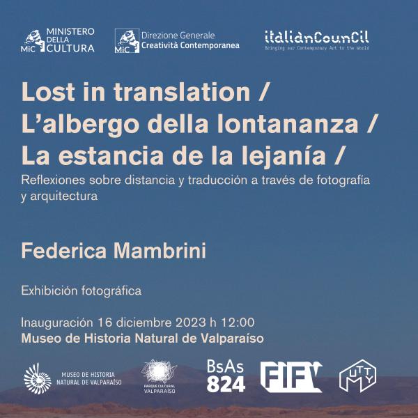 "Lost in Translation / L’albergo della lontananza / La estancia de la lejanía" es el proyecto más reciente de Federica Mambrini, financiado por el Italian Council con la colaboración de instituciones como el Museo de Historia Natural de Valparaíso, el Festival Internacional de Fotografía de Valparaíso, el Espacio BsAs 824, el Parque Cultural de Valparaíso y Mutty Librería.