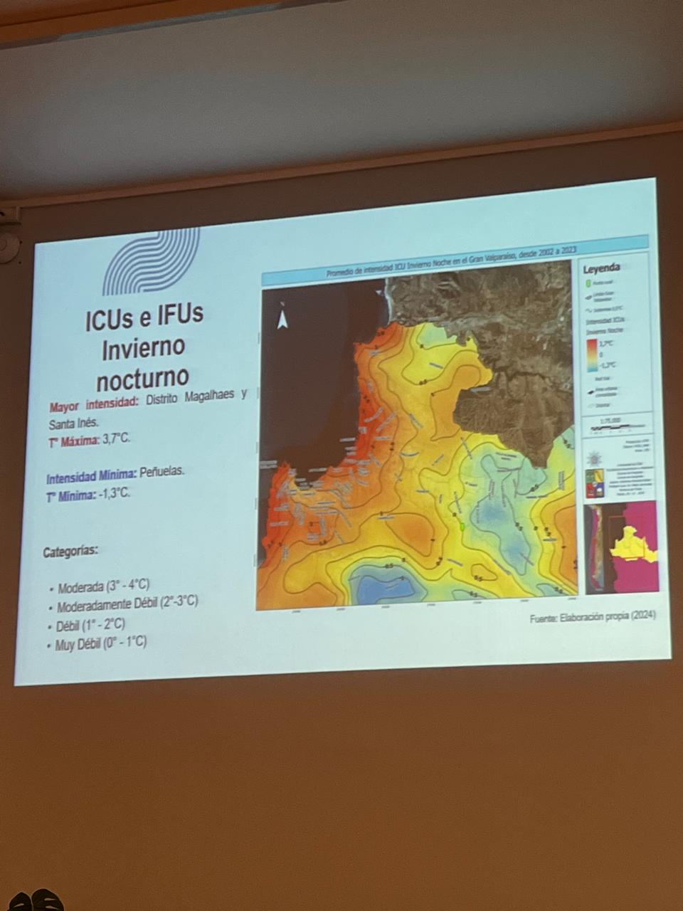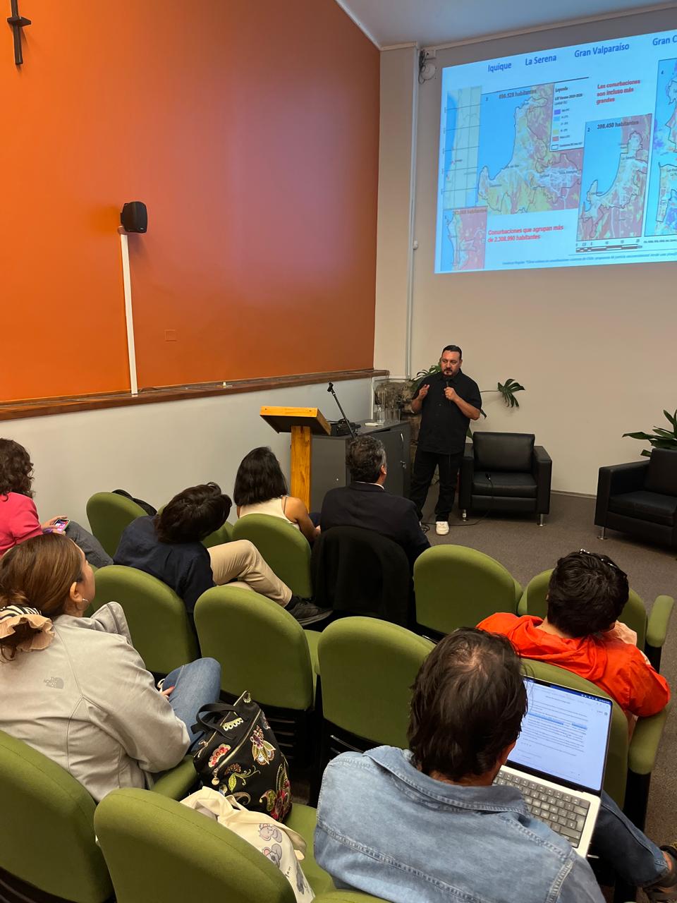 El programa de presentaciones incluyó la exposición del Dr. Pablo Sarricolea, quien abordó el clima urbano en ciudades costeras; la académica Paulina Vidal, quien presentó sobre la observación de la Tierra aplicada al monitoreo del Objetivo de Desarrollo Sostenible ODS 11.3.1; y el académico Oliver Meseguer-Ruiz, quien expuso sobre la vulnerabilidad al calor urbano, con énfasis en los casos de Iquique y Arica. Asimismo, los investigadores Felipe Thomas y Pamela Smith presentaron sobre refugios climáticos y estaciones urbanas, relevando su importancia en contextos de cambio climático.
