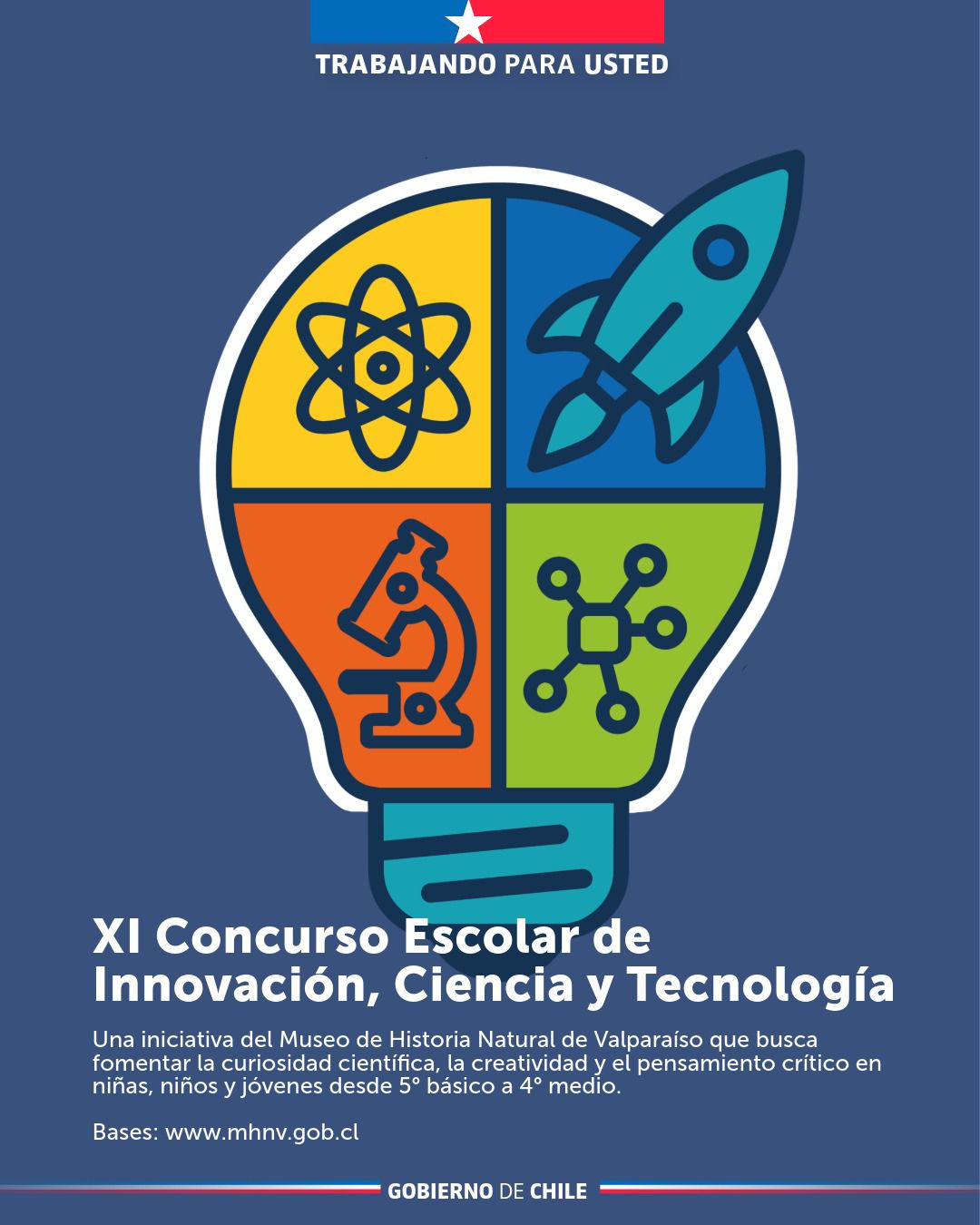 El Museo de Historia Natural de Valparaíso anuncia la apertura de la convocatoria para la XI edición del Concurso Escolar de Innovación, Ciencia y Tecnología 2026, iniciativa que desde 2015 se ha consolidado como un espacio de referencia para el fomento de la curiosidad científica, la creatividad y el pensamiento crítico en estudiantes de educación básica y media a nivel nacional.