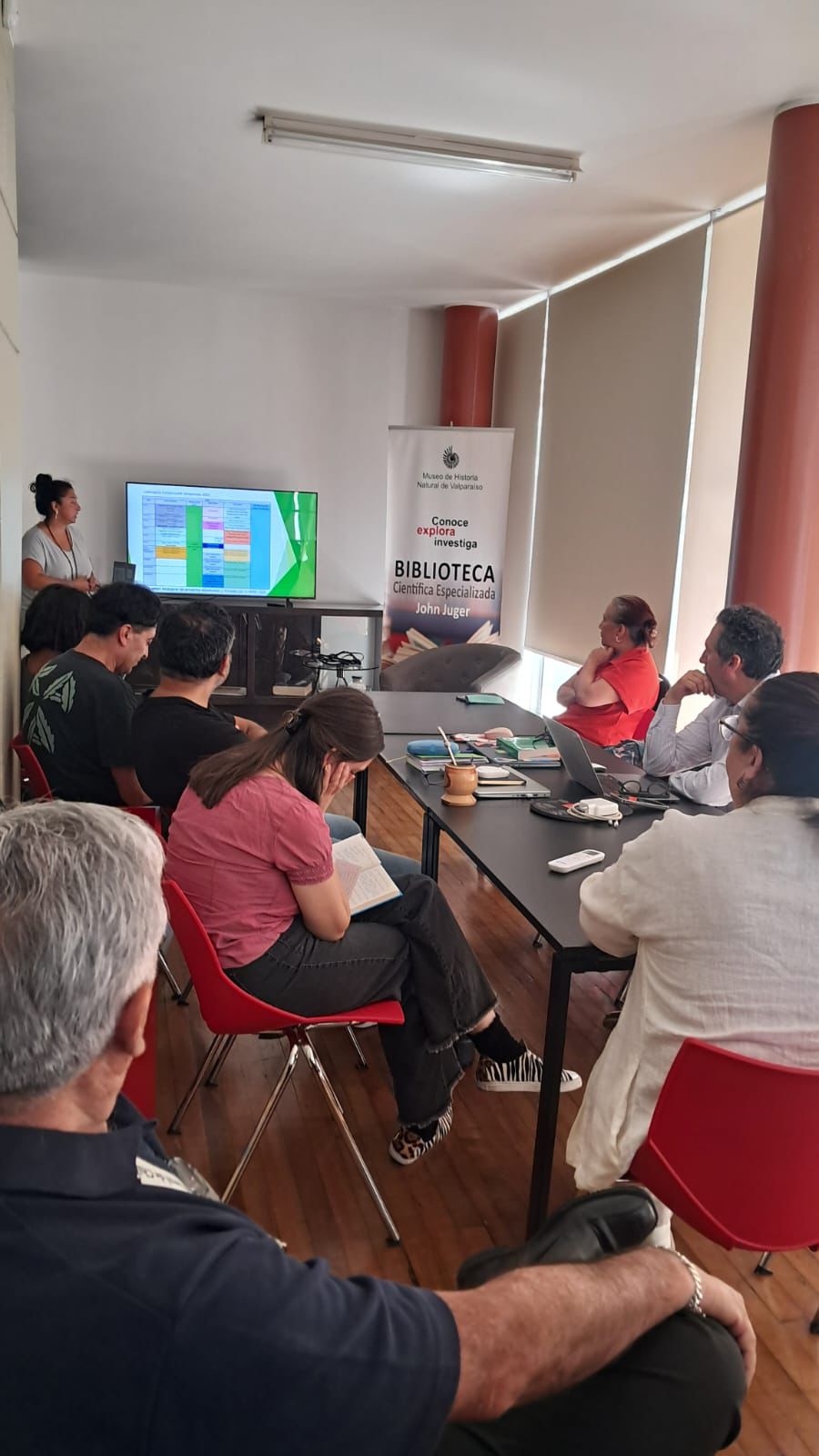 Posteriormente se realizaron presentaciones por parte de responsables de distintas áreas del museo. Participaron Patricia Díaz, encargada de Gestión en Documentos, SIAC, Transparencia, Inventario y Estadísticas; Juan Pablo Cruz, encargado de Museo Digital, web y redes sociales; Andrea Vivar y Alejandra Baradit, del Departamento de Educación; Cinthia Mora, encargada de Gestión Ambiental; Vivian Cordero, bibliotecóloga y editora de la revista Anales; Claudio Ampuero, periodista y encargado de difusión patrimonial y de la sala MuseoLab–Aprendizaje; y Anabell Lafuente, curadora jefa y encargada del Departamento de Ciencias e Investigación. Asimismo, Lilian López, presidenta del Comité Paritario, presentó la planificación correspondiente a 2026.