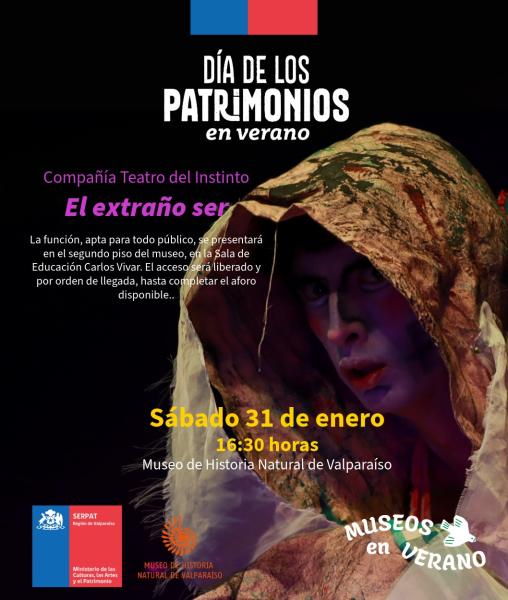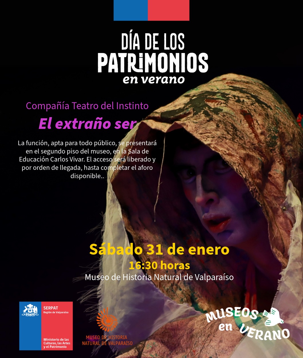 A las 16:30 horas, se presentará la función de teatro “El extraño ser”, dirigida por la Compañía Teatro del Instinto, en la Sala de Educación Carlos Vivar, ubicada en el segundo piso del museo.