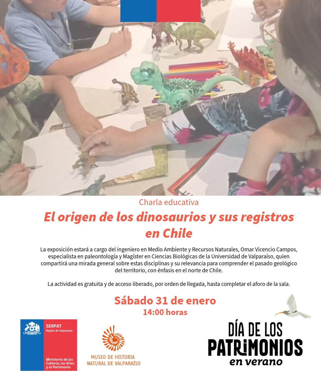 Con esta programación especial, el Museo de Historia Natural de Valparaíso invita a la comunidad a participar del Día de los Patrimonios en Verano, fortaleciendo el vínculo con el patrimonio natural y cultural, y promoviendo el encuentro, el respeto y el cuidado colectivo como parte esencial de nuestra identidad.